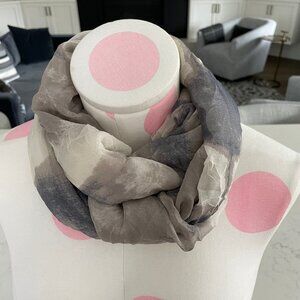 Club Monaco Moody Abstract Print 100% Silk Scarf/Wrap in Grey Cream Tan