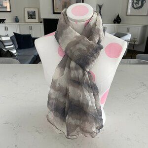 Club Monaco Moody Abstract Print 100% Silk Scarf/Wrap in Grey Cream Tan