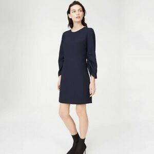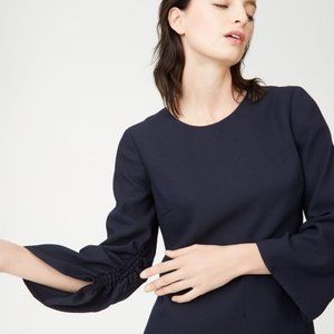A beautiful Club Monaco navy blue Luciena dress with cinched bell sleeves.