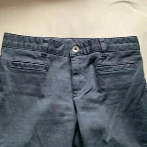 They are nice, deep navy blue. 97% cotton, 3% spandex, so they have a nice bit of stretch. They seem like a medium weight denim.