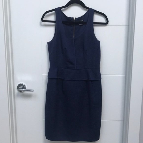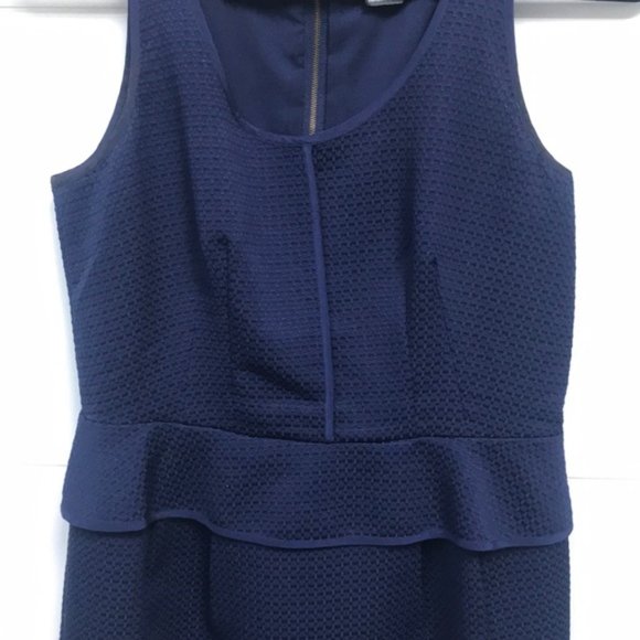 Club Monaco Navy Blue Sleeveless Structured Pencil Dress with textured detail, peplum waist that pops & back zip!