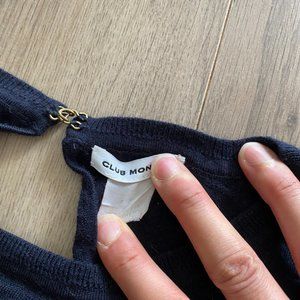 Club Monaco Navy Wool 3/4 Length Sleeve Layered Scoop-Neck Sweater with Neck-Clasp Closure. In great condition, with no major damage. Some minor wash wear in great shape.