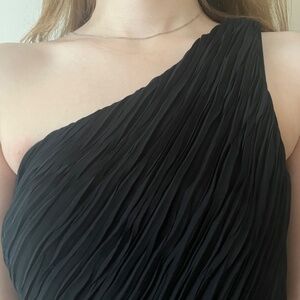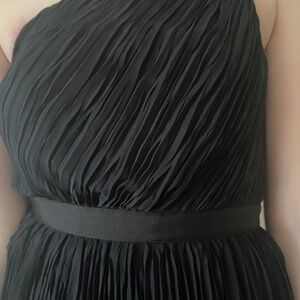Chic and timeless one-shoulder black dress from Club Monaco. Features soft pleated chiffon with a flowy silhouette, peek-through strap detail at the back, and an elastic waist for subtle shape. Fully lined. Women’s size 00 (fits like an XS). Lightweight and elegant—perfect for weddings, cocktail events, or holiday parties. Lightly worn, excellent condition.