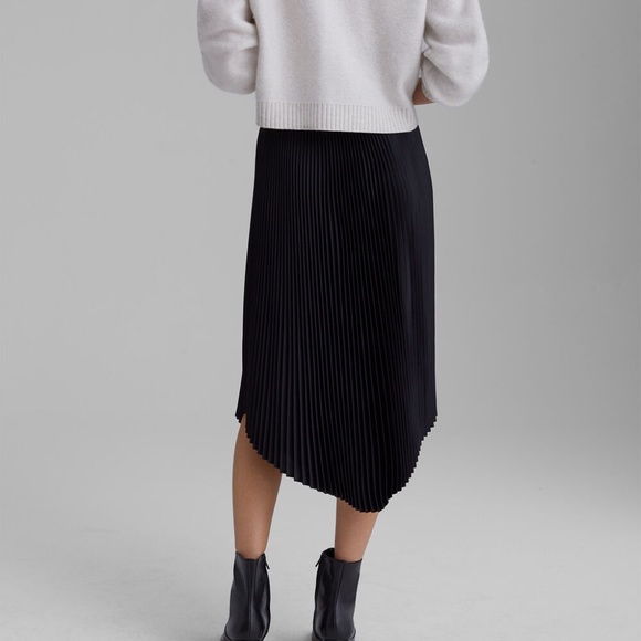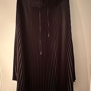 The fuss-free way to wear pleats. A curved-hem, pleated midi skirt combines allover pleating with a drawstring waistband. Pair it with a cami for now, add a jacket for later.