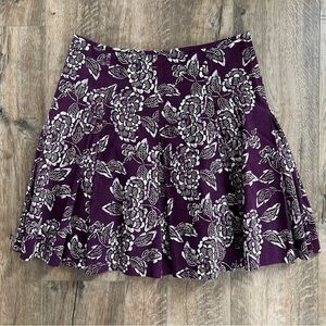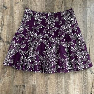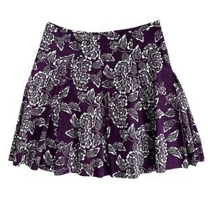 Club Monaco Purple Floral Linen Pleated Fit and Flair A-Line Skirt Size 6