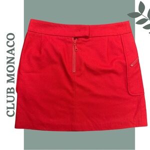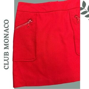 Club Monaco Red Wool Blend Lined Mini Skirt Back Zipper Front Side Pocket Size 0