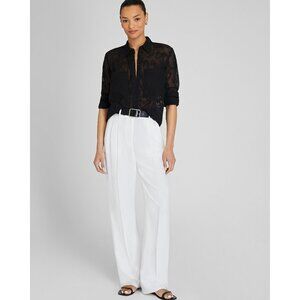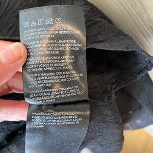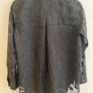 Like new, Club Monaco black sheer blouse with textured floral design and collar. Two large front pockets on chest. Cotton/poly blend. Size XS (oversized), 20" PTP, 29" length.