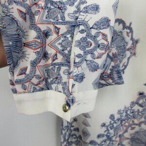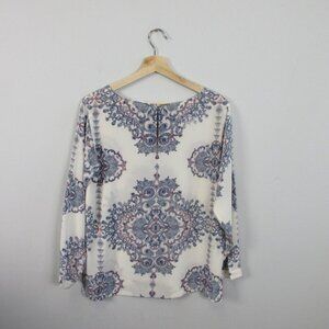 Club Monaco Silk Blouse Women S White Blue Paisley Print Long Sleeve Casual 72