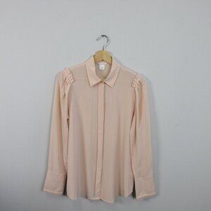Club Monaco Silk Button Up Blouse Women M Peach Ruffle Long Sleeve Classy 128