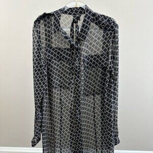 Club Monaco Silk Shirt Dress – Black Checkered – Size 4