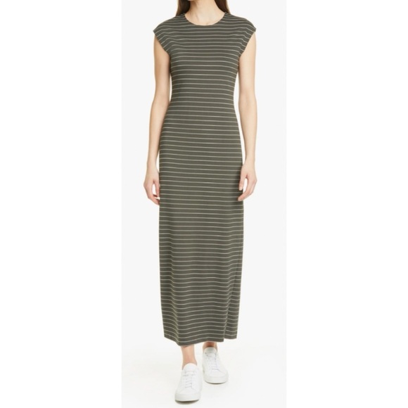 Keywords: Club Monaco dress, striped maxi dress, cutout back dress