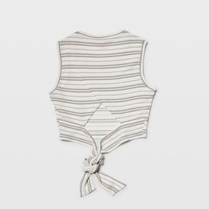 - Cropped and sleeveless like a tank top, this shirt features three-dimensional knit stripes and a cutout with ties in the back