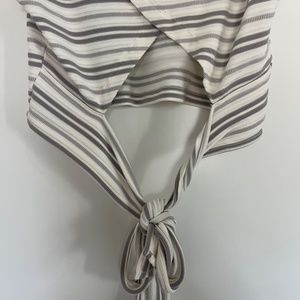 Club Monaco Tie Back Crop Top, White and Grey Striped, Size S, NWOT