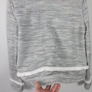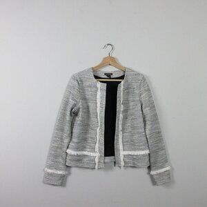 Club Monaco Tweed Jacket Women's Medium Gray Fringe Open Front Mid Length 390