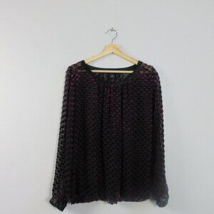 Club Monaco Velvet Burnout Top Women S Black Purple Dots Silk Rayon Sheer 118