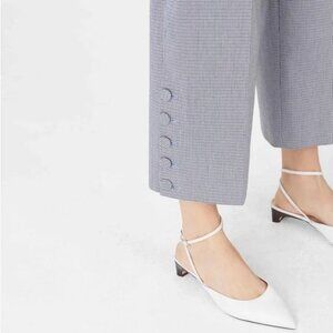 Button details at the hem give a clean-lined vintage-inspired jumpsuit added character
