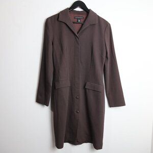 Club Monaco Vintage Wool Brown Maeve Longlined Button Down Trench Coat Size 4