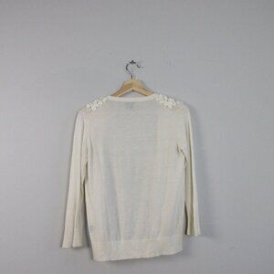 Club Monaco Viscose Blend Cardigan Women S Ivory Button Front Beaded Preppy 134