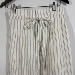 Club Monaco White Striped Linen Blend Wide Leg Pants Size 4 Summer Casual