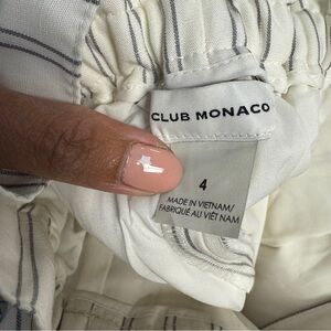 club monaco pants, linen blend trousers, summer wide leg pants, resort style outfit, coastal chic look, lightweight stripe pants, casual vacation outfit, minimalist summer style, relaxed fit pants, neutral aesthetic trousers, women’s size 4 club monaco, elegant casual pants, office, career wear, vacation,