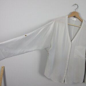 Club Monaco Women's 100% Silk Button Up Top Blouse Long Sleeve Casual Ivory S 96