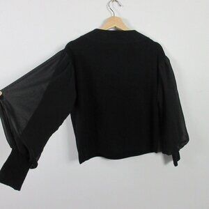 Club Monaco Womens Merino Wool Satin Top Blouse Sweater Black Bubble XS 306