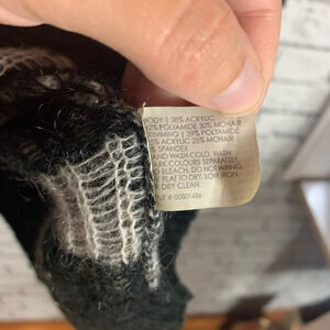 In gently used preowned condition. Minimal loose threads ( see sleeve picture). There is a fuzzy hair texture to the knit from the mohair blend fabric. Please see pictures for approximate measurements, care and fabric details and examples of condition. Please reach out if you have any questions.