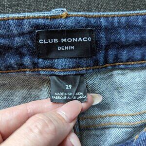 These fabulous bootcut jeans from Club Monaco are in very good used condition. No noted rips, holes or stains. There are two small fabric imperfections near the zipper fly (see photo).