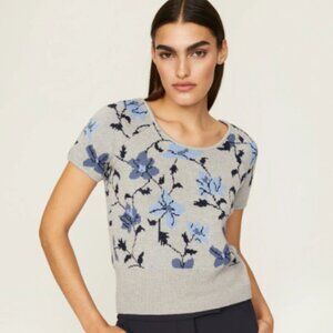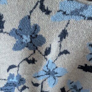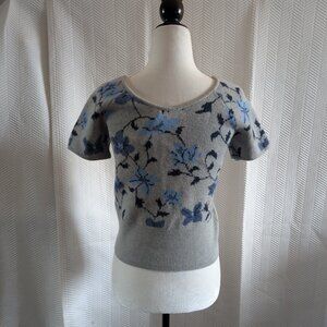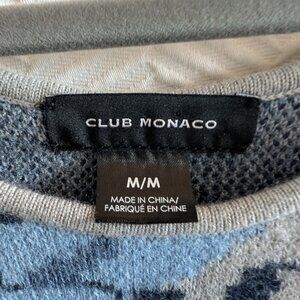 Club Monaco Wool Grey & Blue Floral Jacquard Knit Sweater Tee Size Medium
