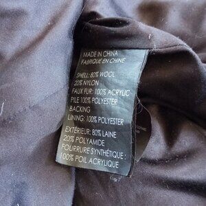 FABRIC: SHELL 80% WOOL 20% Nylon PILE and Lining are 100% Polyester