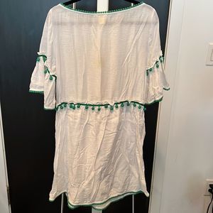 Club Monaco beachy white dress with green trim and pompoms - mini - size medium. Dry clean tag still attached