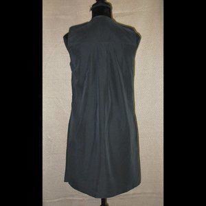 Brand new but missing tags. Fabric content 70% Modal, 30% Polyester. Side zipper, 5 button closure from neck down to just above bust. Side pockets, Front has flowing flap half way across. Plaquettes at shoulders