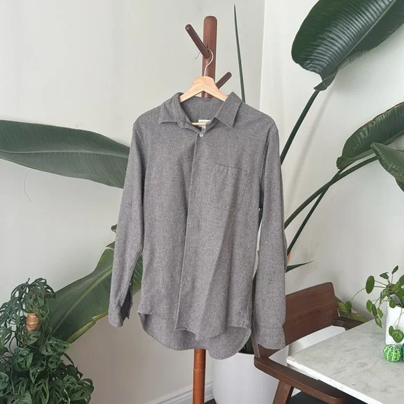 Grey textured long sleeve button down, rarely used, no stains or signs of wear