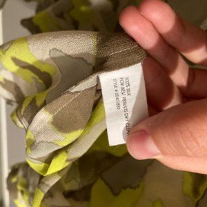 100% silk camouflage button down top from Club Monaco. It is slightly sheer, no flaws.