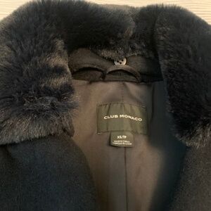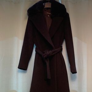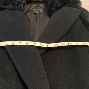 Almost NEW wrap-style full length with removable faux FUR collar - 80% wool