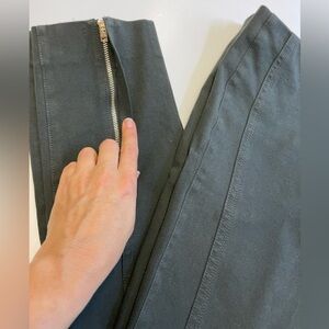 Club Monaco flat front zip up olive green pants zip detail at hem womens size 2