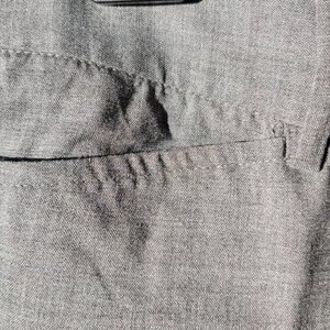 Italian wool, fully-lined boot-cut dress trousers in heathered gray. Long enough for someone 5'9. Matching blazer available.