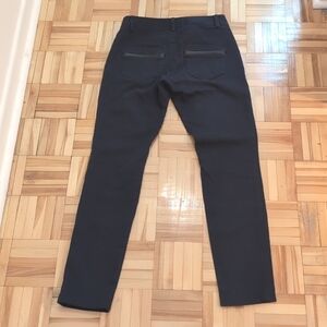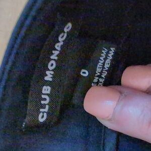 Club Monaco pants size 0, in good condition, has a leather trip, fabric tag is missing. waist is 14", inseam is 26", rise is 7.5"