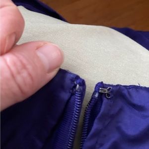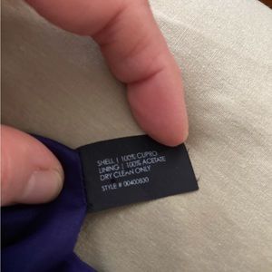 Pleated lapel on the front. Lined. Purple. Made with sustainable cupro fabric, which drapes beautifully. Soft and silky.