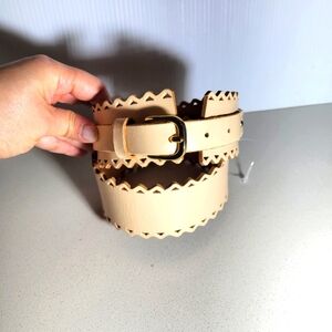 Club Monaco scalloped edge cut out perforated motif corset belt beige neutral S