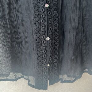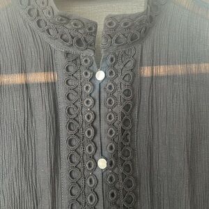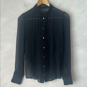 Club Monaco sheer silk blouse mandarin collar embroidered button up size small