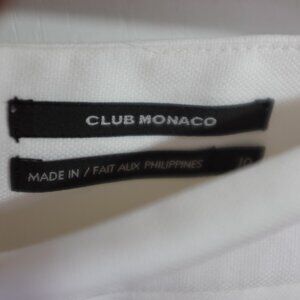Elevate your summer wardrobe with the Club Monaco white cotton skirt. Crafted from a soft yet structured cotton fabric, this skirt features a denim-inspired weave that adds a touch of texture and sophistication. Perfect for both casual outings and more dressed-up occasions, it offers versatile style and comfort for every occasion.