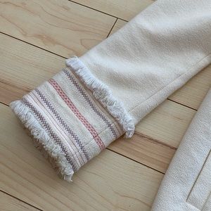 White/ cream jacket with fringe details in the sleeves, elegant looking and fit true to size