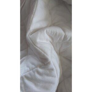 Description : below knee, diamond shape quilt, shawl collar , open front, belted, long sleeves , 2 pockets, flannel type shell fabric, knit jersey lining , contrast blue satin trim.
