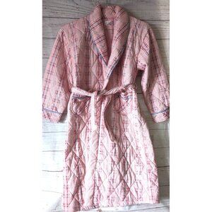 Club Pajamas Unisex Quilt Robe Housecoat Pink Plaid Contrast Trim Pocket Size XL