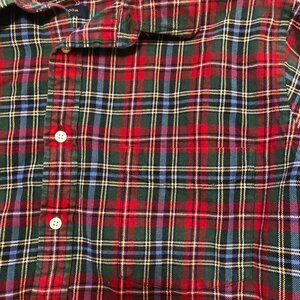 ✧ Features: Soft, cozy long-sleeve button-down flannel shirt in a red, green, and blue tartan pattern
