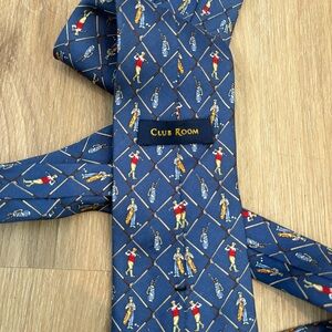 Club Room Novelty Golf Tie – Blue with Golfer Motif – 100% Silk – Made in Korea