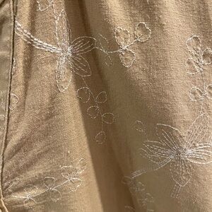 Club x collection 1X embroidered tan linen tailored top linen/ rayon blend