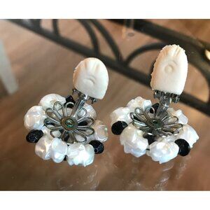 Cluster Clip-On Earrings Vintage With Faux Pearls & Black Beads Grandmacore