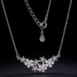 SHEGRACE 925 Sterling Silver Pendant Necklace, with Micro Pave AAA Cubic Zirconia Cluster of Flowers Pendant and Spring Clasps,